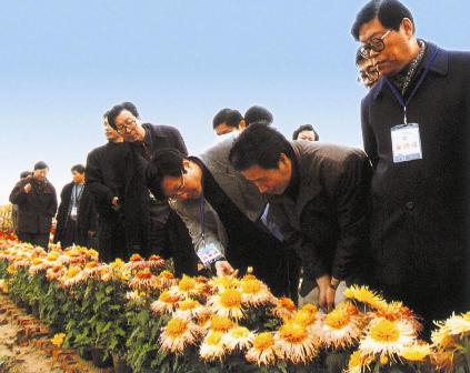 (09-11)代表們參觀采訪神農(nóng)園花卉生產(chǎn)基地。右一為安徽省委宣傳部副部長張育、右二為新華社攝影部主任徐祖根、右三為人民日報深圳記者站站長胡謀。