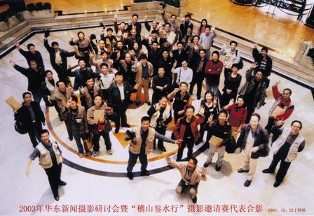 人民日報華東分社從1996年起每年召開一次新聞攝影研討會。這是2003年10月23日于紹興召開的2003年華東新聞攝影研討會的全體代表合影。