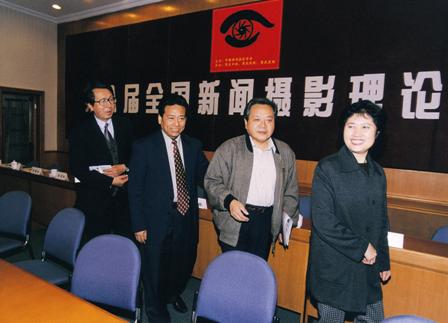 (08-2)范敬宜(左二)、孫忠同(左三)、許必華(右一)、胡穎在第八屆全國新聞攝影理論年會上。孫榮剛攝