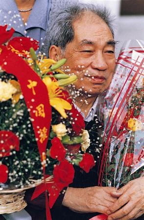 (13-3)劉虎山、王振民代表北京日報給蔣老獻(xiàn)花。