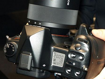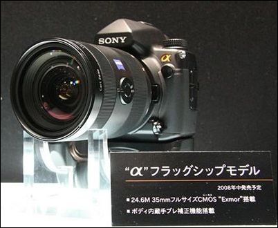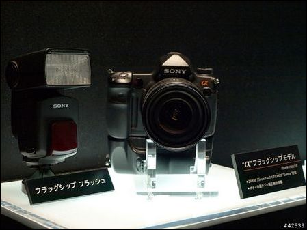 在PIE2008展上亮相的索尼α900全畫幅單反,采用2460萬像素CMOS,具備機(jī)身防抖