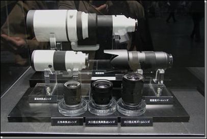 僅一款α900并不足以證明索尼在全畫幅單反市場的實(shí)力,鏡頭群也是衡量實(shí)力的一個重要因素。索尼深喑單反和鏡頭的關(guān)系,于是在展示α900的同時,也大力展示了龐大的鏡頭系統(tǒng)。展會上,除不少高素質(zhì)的ZA鏡頭外,索尼還展示多支長焦G頭,其中包括80-400mm、400mm/F4、600mm/F4這三傳說中的長焦鏡頭。另外,廣角神頭24mm/F1.4以及35mm/F1.8也一齊登場。