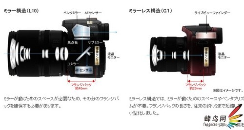該產(chǎn)品的成像結(jié)構(gòu)與傳統(tǒng)4/3系統(tǒng)單反相機(jī)相比要簡化很多,完全電子化