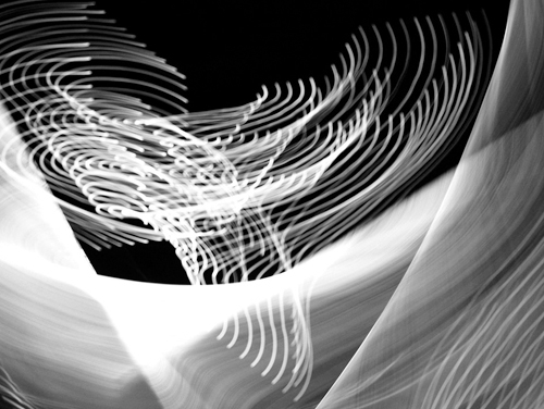后來我又試著固定相機,利用快門優(yōu)先,把速度定在10秒左右,然后在黑暗的屋子里,用小手電在鏡頭前隨意晃動,結果相機里竟拍出線條柔美的曲線,有的似纖纖玉指,有的似躍動的火苗。我想如果用不同色光的小手電,那一定會描繪出更艷麗更豐富的光影畫卷。