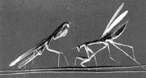 在拍攝微小的動(dòng)植物時(shí),背景處理很重要,背景的一般處理原則是:突出主體,簡(jiǎn)化畫面。如,在黑白攝影中,一般深色主體以用淺色背景為好;而淺色主體以用深色背景為好;而在拍彩色片時(shí),背景顏色應(yīng)與主體顏成對(duì)比色(互補(bǔ)色)為好。如在室外拍攝昆蟲時(shí)往往背景很雜亂,這時(shí)可在昆蟲背面安置一張與昆蟲顏色互為對(duì)比色的背景紙,從而簡(jiǎn)單化背景,使昆蟲更加突出(見圖三)。