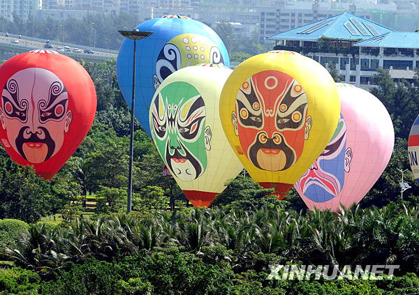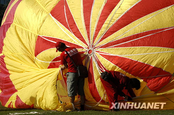 當(dāng)日,2009第三屆??跓釟馇蚬?jié)暨H1中國(guó)熱氣球挑戰(zhàn)賽在海口拉開帷幕,共有25支熱氣球隊(duì)參加此次為期四天的比賽。新華社記者趙穎全攝