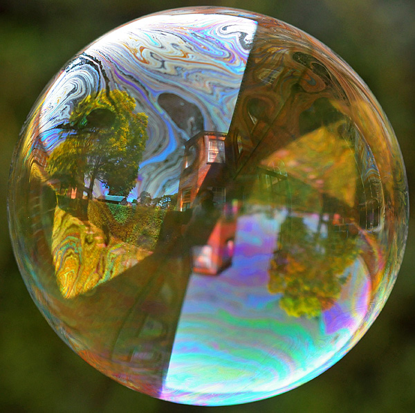 2009年7月12日消息,肥皂泡在陽光的照耀下會顯出七彩的顏色,還會反射出耀眼的光芒。英國攝影師Richard Heeks多年來就一直著迷于拍攝各種環(huán)境下肥皂泡所反射出來的景象以及如同幻覺的美麗。