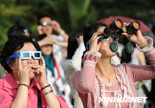 7月22日,昆明市民在昆明市東風(fēng)廣場觀看日食奇觀。新華社記者藺以光攝