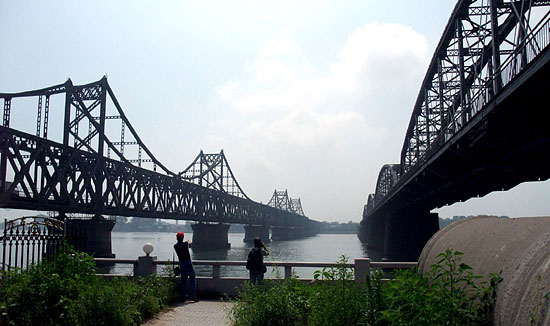 澳門、西藏、沈陽三地攝影家在丹東鴨綠江橋采風。