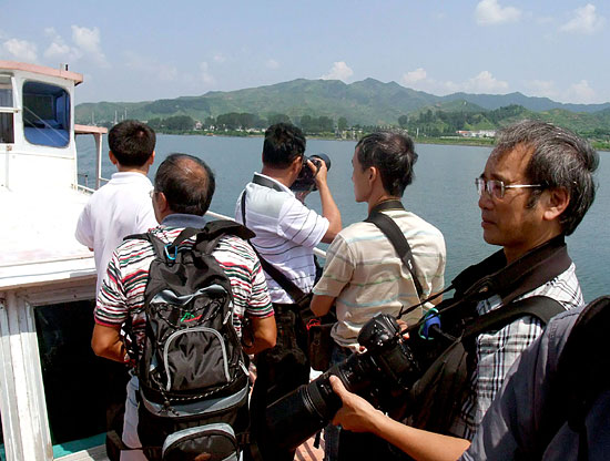 澳門、西藏、沈陽三地攝影家在丹東鴨綠江采風。
