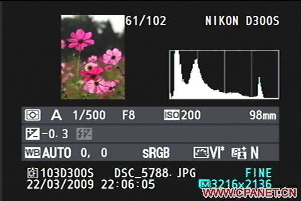 尼康D300s回放菜單下的RGB直方圖顯示