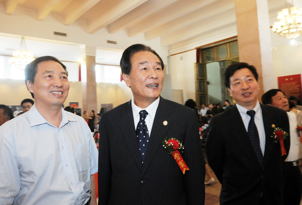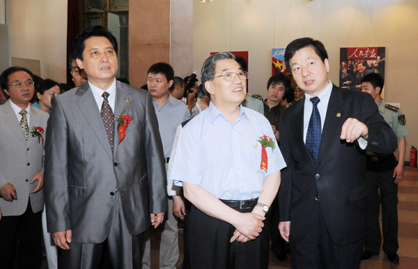 3. 《人民畫報(bào)》社長兼總編輯徐步(左)陪同中宣部副部長蔡名照(右)、中國外文出版發(fā)行事業(yè)局局長周明偉(中)參觀《人民畫報(bào)》圖片藏畫展。