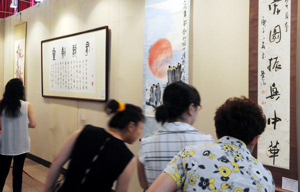 7. 出席《人民畫報(bào)》創(chuàng)刊60周年紀(jì)念活動的書畫界人士在參觀《人民畫報(bào)》藏畫展。