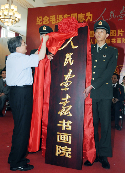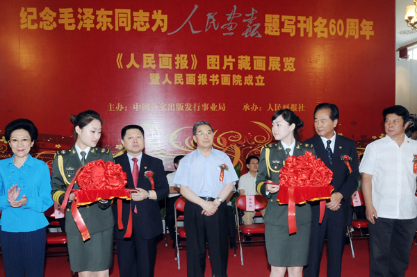 《人民畫報(bào)》以熱烈而簡樸的方式,在中國人民革命軍事博物舘舉行慶祝活動,紀(jì)念毛澤東同志為《人民畫報(bào)》題寫刊名60周年,與此同時,《人民畫報(bào)》圖片藏畫展也在這里開幕,人民畫報(bào)書畫院揭牌成立。