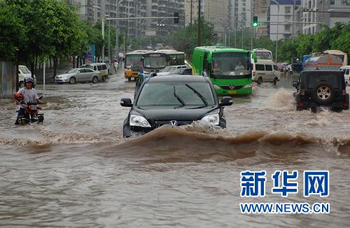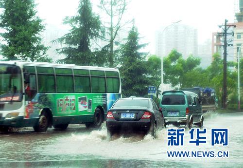??? 7月9日,重慶市江北區(qū)公路嚴重積水,造成交通大面積堵塞。新華社記者 陳誠 攝
