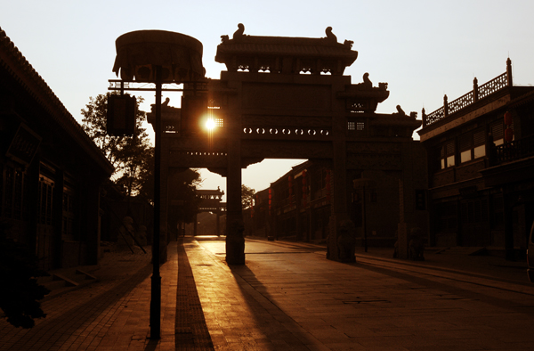 4.?山海關(guān)古城內(nèi)東西大街上復(fù)建的進(jìn)士坊牌樓。