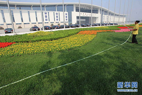 ??? 9月13日,天津夏季達(dá)沃斯論壇主會(huì)場(chǎng)梅江會(huì)展中心外的草坪花壇綠意盎然。世界經(jīng)濟(jì)論壇2010年新領(lǐng)軍者年會(huì)(簡(jiǎn)稱(chēng)“夏季達(dá)沃斯論壇”)于9月13日至15日在天津召開(kāi)。來(lái)自近90個(gè)國(guó)家和地區(qū)的1500多名與會(huì)者將共同探討“推動(dòng)可持續(xù)增長(zhǎng)”這一主題。新華社記者 李明放 攝