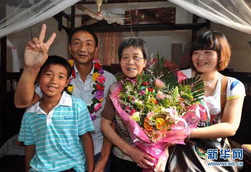 9月27日,詹其雄(中)在家門口受到鄉(xiāng)親們的歡迎。新華社記者張國俊攝