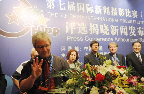 趙德潤主席在新聞發(fā)布會上介紹說,本屆華賽共收到來自世界五大洲70多個國家和地區(qū)3300多位攝影記者和攝影師3萬8千多幅作品,其中國外參評作品占總數(shù)的60%多,體現(xiàn)了華賽的國際性、專業(yè)性和影響力。幾天來,各位評委以極其認真的精神,夜以繼日精心評選、討論交流,經(jīng)過多輪篩選,終于把反映2010年世間萬象的一批最優(yōu)秀的新聞攝影作品遴選出來,呈現(xiàn)給世人。這些獲獎作品展現(xiàn)了過去的一年人類社會經(jīng)濟、政治、文化生活的現(xiàn)實圖景,體現(xiàn)了人類對戰(zhàn)爭與災難的抗爭,對和平與發(fā)展的追求。