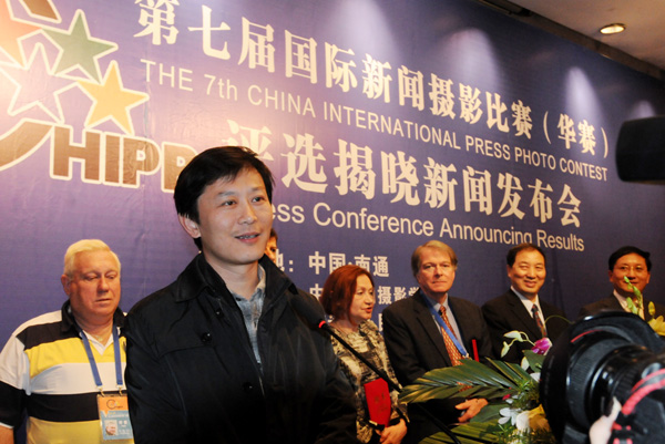 25日上午,第七屆國際新聞攝影比賽組委會在評選地江蘇省南通市舉行新聞發(fā)布會,中國新聞攝影學會執(zhí)行主席、第七屆華賽評委會主席趙德潤發(fā)布新聞,中國新聞攝影學會副主席、第七屆華賽評委徐步宣布評選結(jié)果。