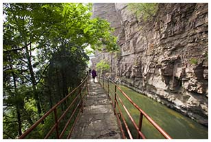 紅旗渠是二十世紀(jì)六十年代,林州人民在極其艱難的條件下,從太行山腰修建的引漳入林工程。被世人稱之為“人工天河”。紅旗渠工程于1960年2月動工,至1969年7月支渠配套工程全面完成,歷時(shí)十年余。它以濁漳河為源,在山西省境內(nèi)的平順縣石城鎮(zhèn)侯壁斷下設(shè)壩截流,將漳河水引入林州(以前叫林縣)。紅旗渠總干渠長70.6公里,渠底寬8米,渠墻高4.3米,縱坡為1/8000,設(shè)計(jì)加大流量23 秒立方米。紅旗渠工程總投工5611萬個(gè),共完成土石砌方2225萬立方米。總投資 12504萬元,其中國家投資4625萬元,占37%,社隊(duì)投資7878萬元,占63%。