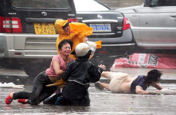 ??? 臺風(fēng)登錄吳川,來不及躲避的行人被吹倒。7月22日13時45分,2010年第3號臺風(fēng)“燦都”在吳川市吳陽鎮(zhèn)沿海地區(qū)登錄。登錄時中心附近最大風(fēng)力12級,陣風(fēng)15級,風(fēng)速高達35米每秒。據(jù)初步統(tǒng)計,全市共93.9萬人受災(zāi),倒塌房屋689間,直接經(jīng)濟損失12.48億元。
