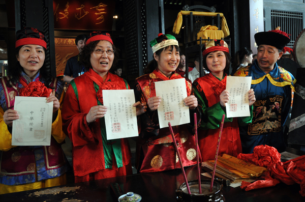 11、游客在閬中古城體驗(yàn)古代的科舉文化。