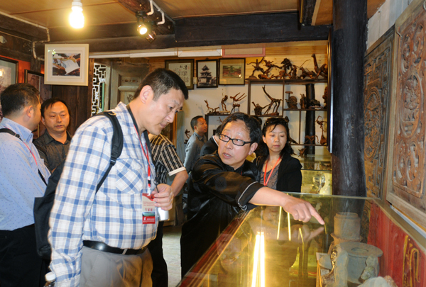 13、參加閬中古城保護(hù)與城市發(fā)展專家座談會的專家在古城張家小院參觀個(gè)體文物收藏展。
