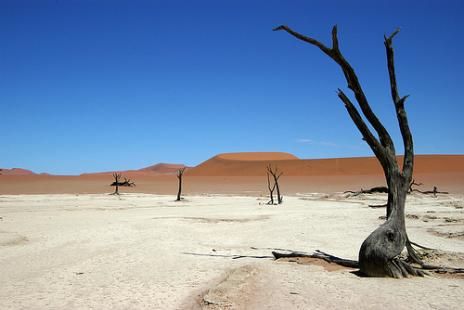 這片土地是大量已有900年歷史的古樹的墓地,這里的景象令人過目難忘。偶爾在這里能看到一兩只甲蟲或者一小片灌木叢,它們依靠晨露產(chǎn)生的薄霧生存,然而除了這些地方,別處均是一片死寂,沒有任何生命跡象。這些樹并未變成化石,它們只是干枯到了極點。前往死亡谷很困難。從塞斯瑞姆(Sesriem)國家公園大門附近的停車場需要步行6英里(9.66公里)才能到達目的地,很多人會一大早出發(fā),以便在陽光最強的時段之前趕到死亡谷。附近不遠處就是蘇索斯維利鹽田,它跟死亡谷一樣,也是水路被沙丘中斷了。這兩個景點都很值得一游,不過這是死亡谷,這里的一切完全超出了我們的想象。