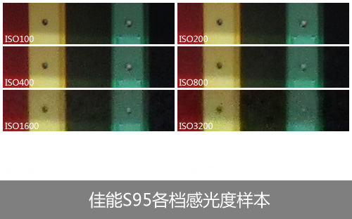 對(duì)于高感光度表現(xiàn),我們拍攝同樣一個(gè)場景,然后在同樣一個(gè)位置對(duì)各個(gè)相機(jī)各檔感光度拍攝樣本進(jìn)行切片,相信再多的描述不如直接看圖直觀。