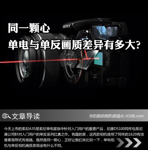 今天上市的索尼A35是索尼單電家族中針對(duì)入門用戶的重要產(chǎn)品,尼康D5100同樣也是尼康公司針對(duì)入門用戶的單反系列扛鼎之作。有趣的是,這兩款相機(jī)使用了同樣的1620有效像素背照式傳感器。既然是同一顆心,正好讓我們來比較一下,單電相機(jī)與單反相機(jī)畫質(zhì)表現(xiàn)會(huì)有什么不同。