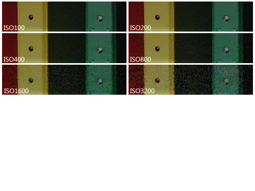 對于高感光度表現(xiàn),我們拍攝同樣一個場景,然后在同樣一個位置對各個相機各檔感光度拍攝樣本進(jìn)行切片,相信再多的描述不如直接看圖直觀。