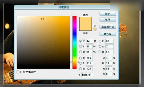 2、在接下來的窗口設(shè)定顏色代碼f3d37d。