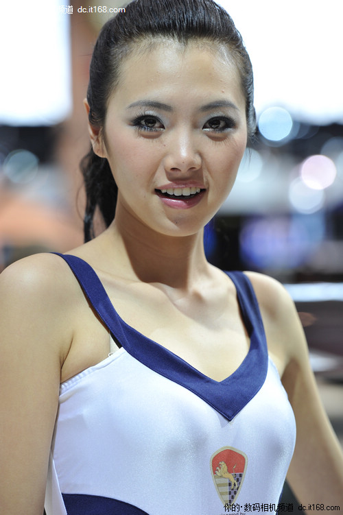 車展現(xiàn)場(chǎng)條件光線比較復(fù)雜,一般來說,最好帶一只SB800之類的閃光燈,做為模特面部打光之用,不過隨之而來的問題就是,平白要多增加一只閃光燈的重量和最少8只電池的重量,這讓你本來就很沉重的器材,繼續(xù)增加負(fù)擔(dān)??紤]到D3S號(hào)稱高感光之王,ISO可以達(dá)到ISO12800的程度,再加上VR2的鏡頭加持,相信快門速度肯定低不了,圖片穩(wěn)定性有保證。那下一步就是需要找一些好的打光角度來拍攝模特,利用現(xiàn)場(chǎng)光線完成這一困難的任務(wù)了!