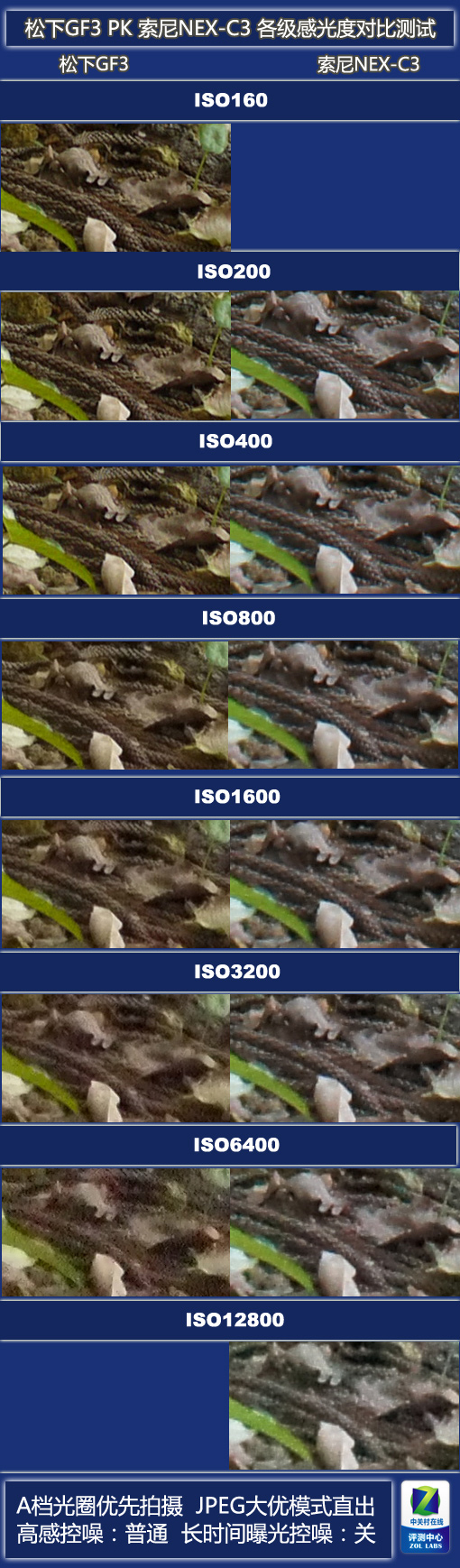 索尼NEX-C3pk 松下GF3 感光度逐級(jí)對(duì)比測(cè)試