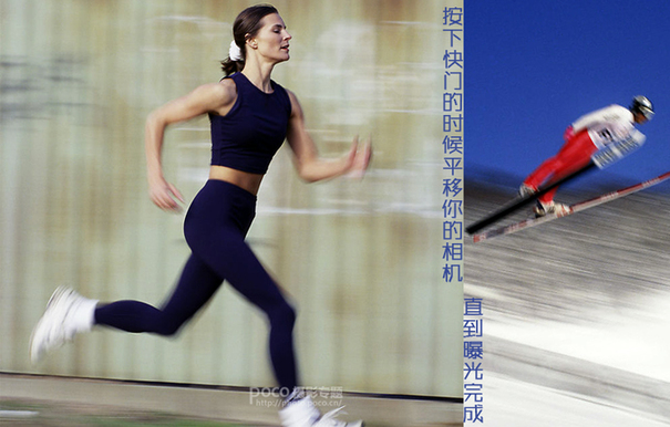 把快門定在1/10或1/20秒,調整合適曝光,不斷半按快門自動對焦,或快速手動對焦,或用預先對焦等方法,總之對準你要拍攝的運動中的物體,如汽車或人跑步,按下快門的時候平移你的相機,直到曝光完成。