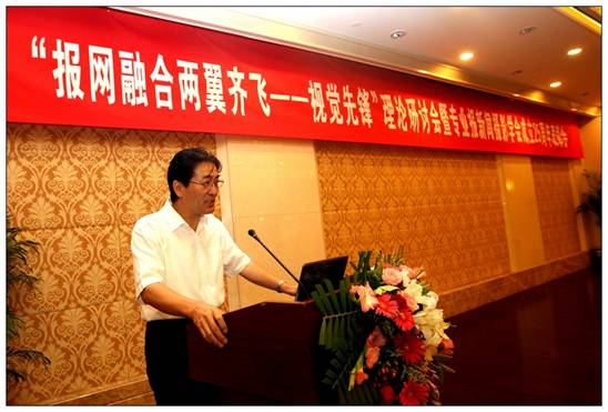 安佑忠會長在會上作“報(bào)網(wǎng)融合 兩翼齊飛——視覺先鋒”主題發(fā)言。