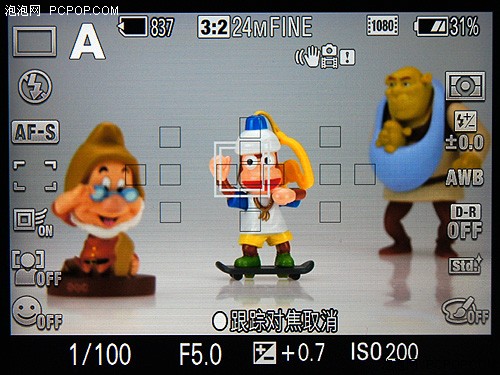 然后通過機背十字導(dǎo)航鍵中心的AF按鈕鎖定跟蹤對象