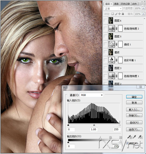 第一步,打開原圖后,首先使用HDR濾鏡,對圖片進(jìn)行初步調(diào)整,使亮的部位非常亮,暗的部位非常暗,同時亮部、暗部的細(xì)節(jié)都很明顯 。(現(xiàn)在HDR濾鏡可以在一張圖片上實現(xiàn)高動態(tài)范圍效果,不必合成多張曝光量不同的同一張照片。)然后使用“色階”工具調(diào)整圖片,增強(qiáng)其對比度。
