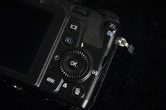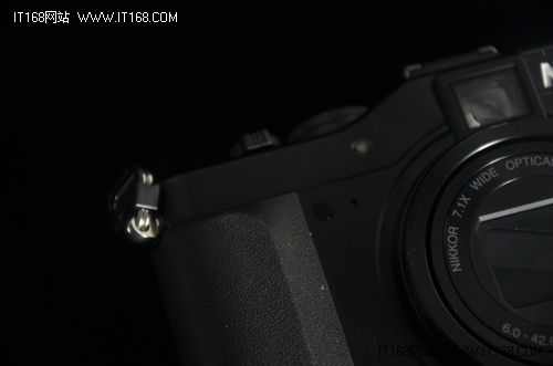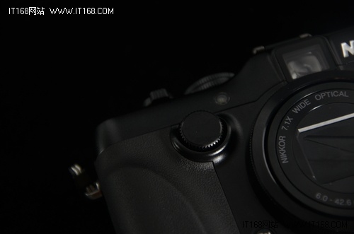 尼康P7100在正面手柄右側(cè)添加了一個(gè)豎置的撥輪,這個(gè)撥輪可用于光圈的調(diào)節(jié),一方面在光圈調(diào)節(jié)上前撥輪比較順手,而另一方面前后雙撥輪也更顯高端嘛。