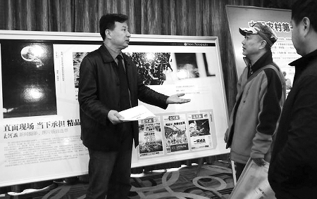 會議現(xiàn)場,本報的攝影作品展板得到了眾多媒體人的好評。記者王燦文 記者陳曉東圖