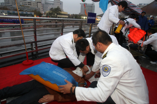11月30日,全國旅游安全突發(fā)事件應(yīng)急演練上,消防官兵救援被困人員。當(dāng)日,全國旅游安全與保險(xiǎn)工作會(huì)議在江蘇南通召開,并舉行旅游安全突發(fā)事件應(yīng)急演練,此演練旨在促進(jìn)旅游應(yīng)急救援能力和應(yīng)急處置協(xié)調(diào)聯(lián)動(dòng)能力的提高,保障旅游全行業(yè)安全穩(wěn)定。 許叢軍攝影報(bào)道