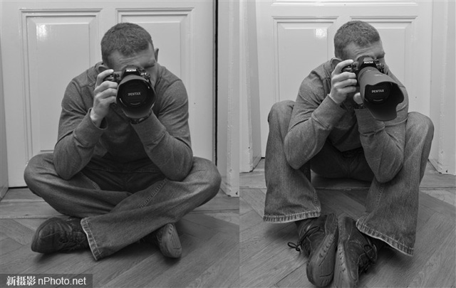 手持相機拍攝時,正確的姿勢是確保拍出清晰照片的基礎之一。Alex的姿勢中使用左手托住相機,相比Joe的靠肩部支撐相機適用機型更廣一些。在下蹲時,后腳的擺放姿勢有兩種,可以任選一種適合自己的。