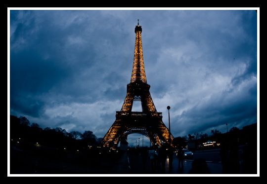 埃菲爾鐵塔的日落美輪美奐。但正當(dāng)我們要離開的時(shí)候,我又跑了回去,才欣賞到這樣的美景,晚間暗色的云朵為燈光閃耀的鐵塔落上了一個(gè)華蓋。