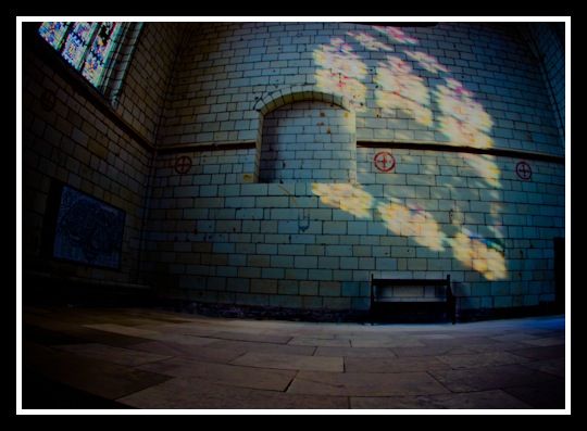 在昂熱古堡,我和朋友逐個(gè)房間尋找美麗的畫(huà)面。在這個(gè)小禮堂里,當(dāng)別人都走掉了的時(shí)候,我卻席地而坐。我知道我想捕捉陽(yáng)光照射在彩色玻璃上時(shí),在墻上投下的光影。而直到左右人都離開(kāi)后,我才能完成這幅作品。