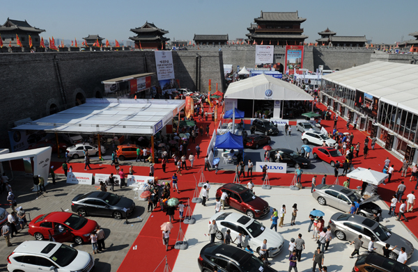 ????設(shè)在古城內(nèi)的車展,吸引大批參觀者前來(lái)觀摩。王呈選攝影報(bào)道