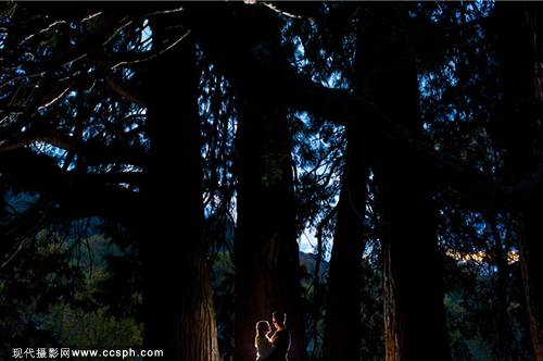 有些時(shí)候,我們無法找到空曠的地方。例如在茂密的樹林之中,這時(shí)候可以用離閃/飛燈的方式,自制人像剪影,那些圍在主體外沿的光線,會制造出很漂亮的效果。