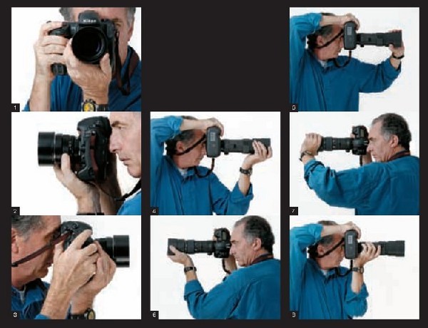 6~7. 這是4~5握法的變形,也是我最喜歡的握法。由于左肘仍是懸空的,因此使用握住鏡頭前方的方式可以更為穩(wěn)固和自然。使用長(zhǎng)焦鏡頭,握住鏡頭的中后端8. 左手拖住鏡頭中后部并承擔(dān)相機(jī)重量是更為常見的握法,此時(shí)左前臂呈垂直狀態(tài)并貼近身體。盡管不太靈活,但如果手動(dòng)對(duì)焦鏡頭或手動(dòng)鏡頭時(shí),可以作為一種可選的手持方式。