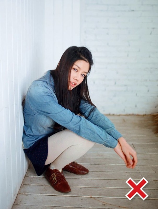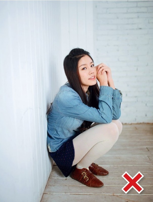 蹲下之后,在保持身體姿態(tài)固定后,將手肘支撐在膝蓋上,用手臂支撐起整個上身會顯出上下身比例均衡,同時后背稍稍挺直;如果選擇將雙手向前伸直的蹲姿,頭部一定要稍稍后仰來保證畫面中主體重心位置的均衡,頭部過于前傾會讓畫面中的重心靠前,女孩整體的蹲姿就會顯得十分呆板。清新文藝的蹲姿關(guān)鍵要領(lǐng)在于,雙腿并攏。建議背部靠墻雙肩離開墻面。如果背部離開墻壁會很自然地向前彎曲,要根據(jù)畫面效果及時調(diào)整避免駝背。