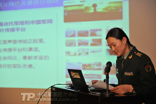 解放軍報、中國軍網(wǎng)特約記者李三紅發(fā)言:圍繞中心,抓好重大題材的攝影報道。趙佳慶攝